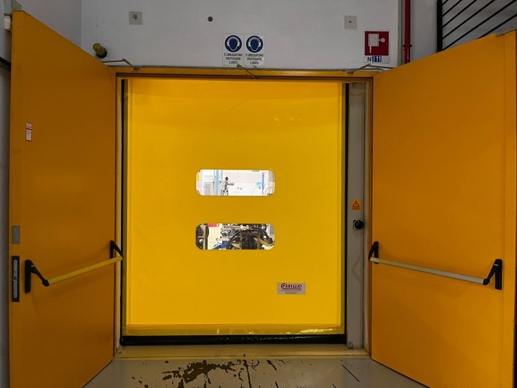 Crash, grazie alle cerniere laterali che scorrono all’interno delle guide, garantisce un alto isolamento termico nei reparti industriali con specifiche esigenze fisiche, acustiche e igieniche.