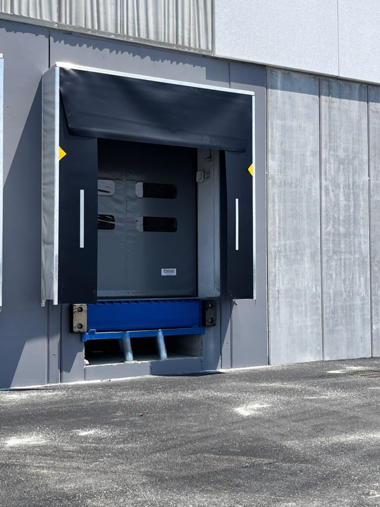 I portali isotermici Careglio, realizzati in acciaio zincato e con telo in PVC, sono progettati per ridurre al minimo gli scambi termici tra magazzino e automezzo refrigerato, limitando così gli sprechi energetici e mantenendo inalterata la qualità dei prodotti.